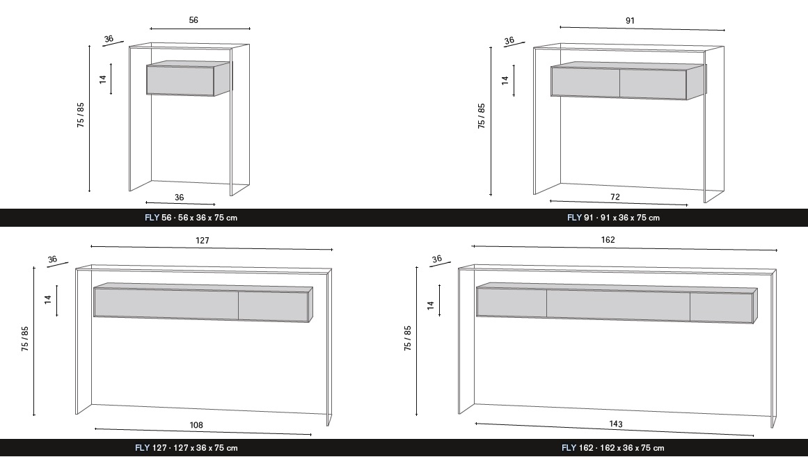 קונסולה זכוכית מעוצבת FLY שובה עם צורתה המינימליסטית ומוקפדת שלה.