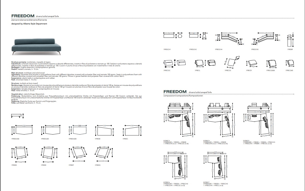 Freedom ,ספה נוחה בעיצוב מקורי מבית ריהוט היוקרה האיטלקי Alberta SALOTTI. הספה מגיעה במגוון מידות ועיצובים וניתנת להזמנה ע”פ רצון הלקוח והתאמת הספה לחלל העיצובי. הריפוד מגיע בשלל בדים איכותיים ,דמוי עור או עור איטלקי.