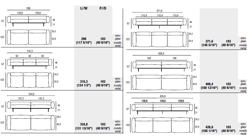 הספה זמינה במגוון מידות וריפודים לבחירה.