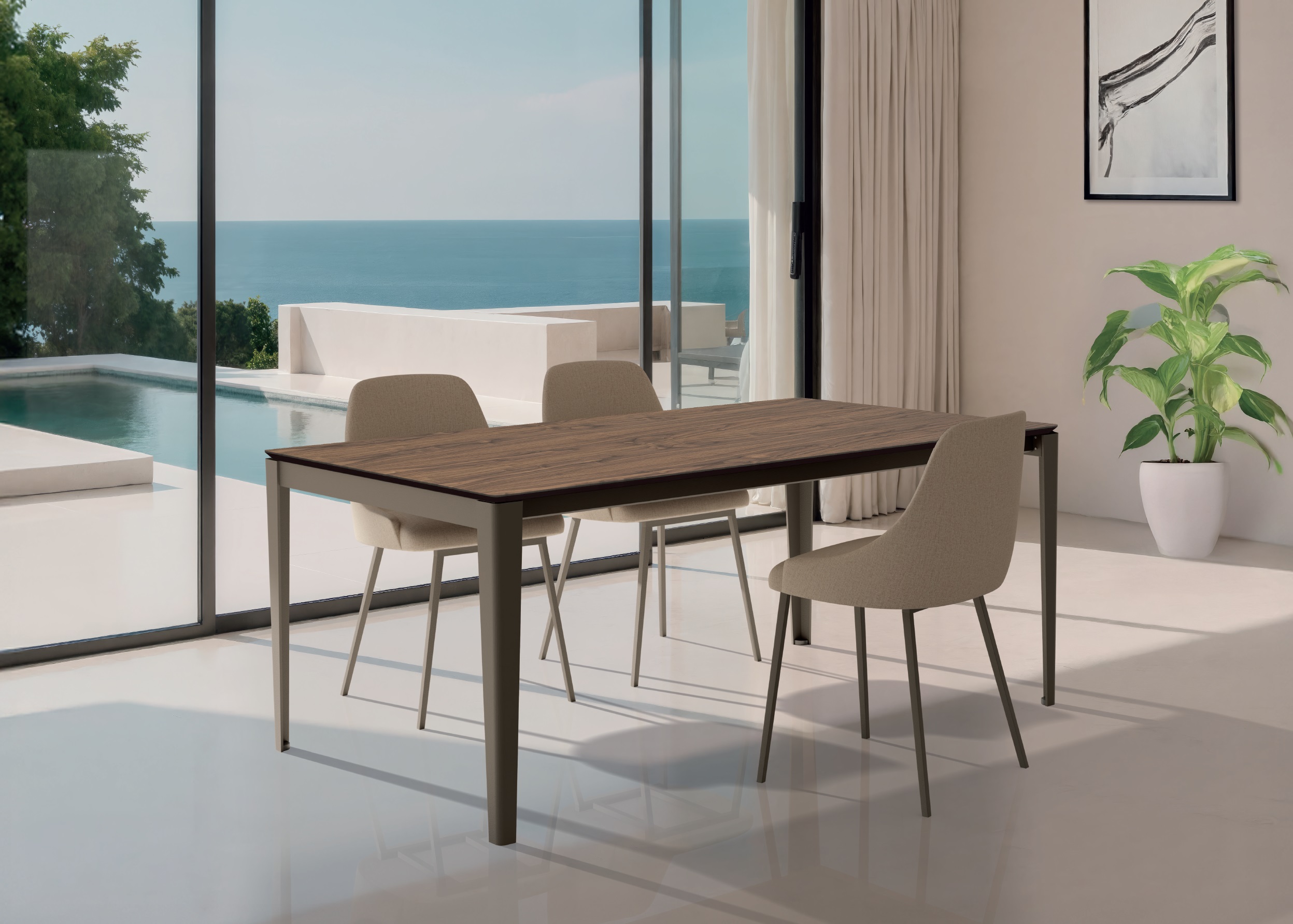 סדרת שולחנות פורצי דרך בשימוש משטח Dekton או קרמיקה לבחירה, ומציעה אפשרויות רבות למשטחים איכותיים המדמים גימורי מלט, חלודה או שיש .