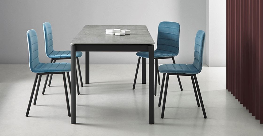 שולחן אוכל מודרני בשילוב משטח Dekton , ורגלי מתכת