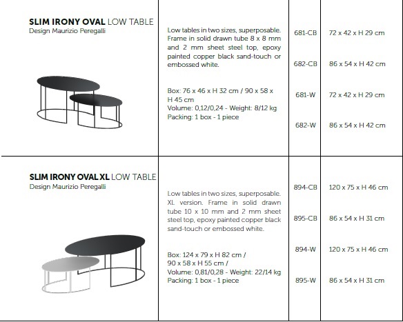 המחיר מתייחס לסט שולחנות Slim Irony Oval
