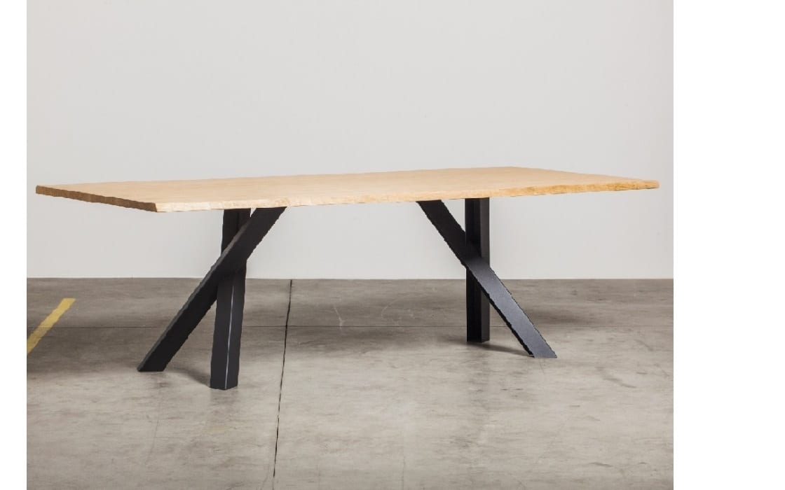 שולחן אוכל 3.00/1.10 מ' בעץ אלון בשילוב של רגל ברונזה