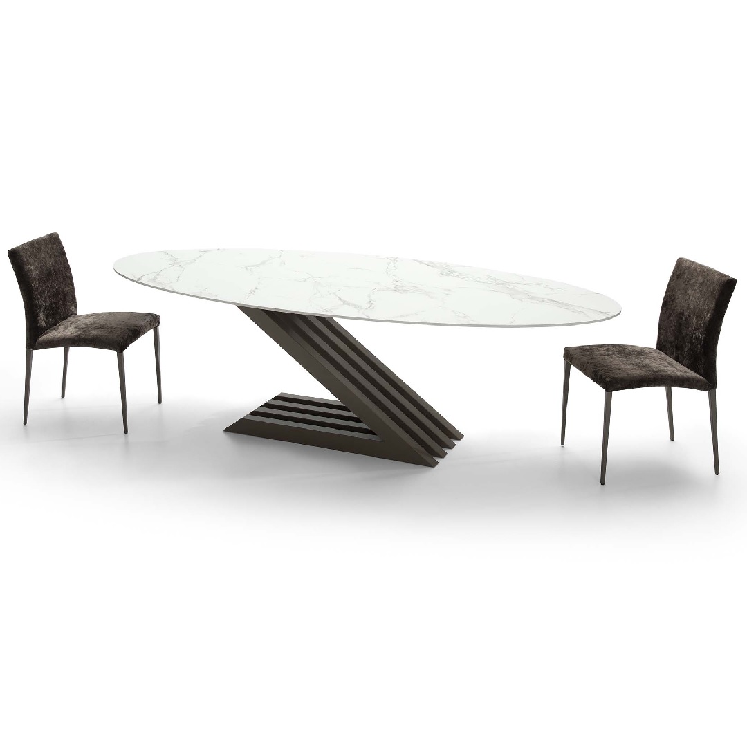 שולחן אוכל אובלי ייחודי , בשילוב משטח קרמי או DEKTON לבחירה ורגל מתכת פיסולית. שולחן יפיפה בעיצוב מודרני , נקי ומוקפד. השולחן זמין במגוון מידות וגמורים לרגל ולפלטה העליונה.